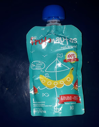 El producto que aparentemente habría provocado la intoxicación de este grupo de alumnos se llama "Frutanautas” de sabor de fresa y plátano, según se aprecia en la etiqueta este es considerado un ‘snack frutal’.